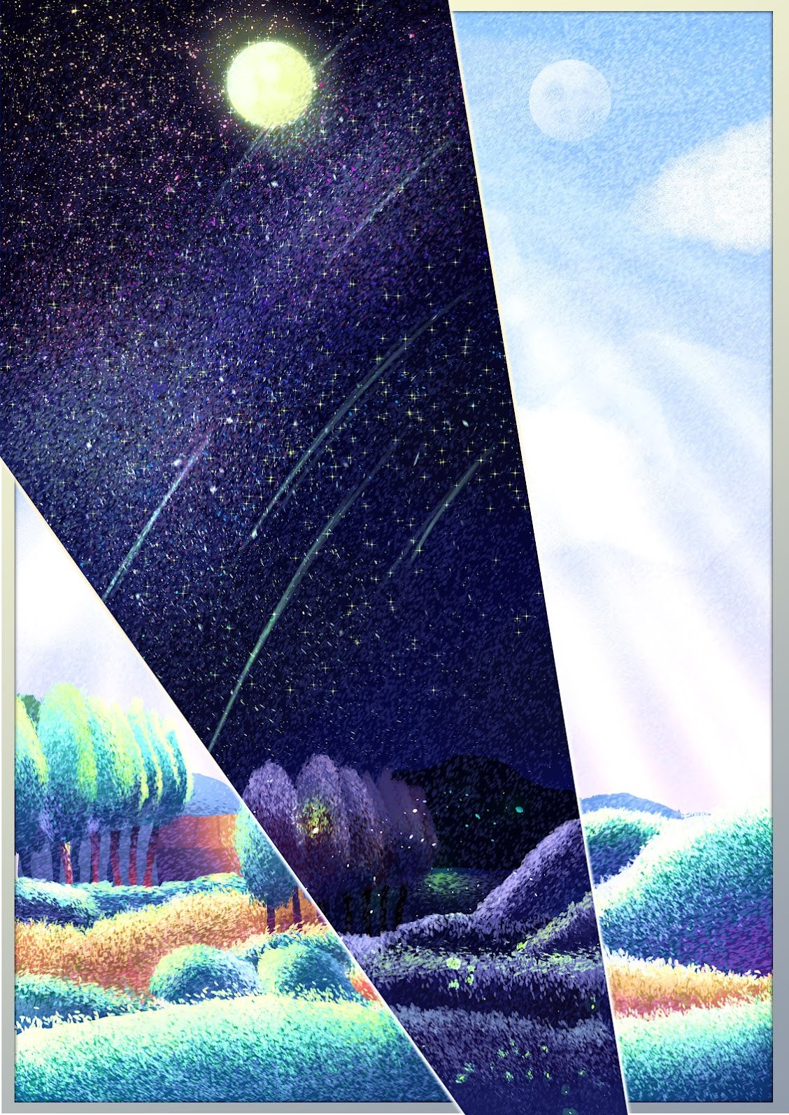 ここまで私はただ「絵が上手くなりたい」と思い描き続けてきました。 しかしSNSを見れば、私より上手い人がいくらでもいて、 自分の絵に自信を失いかけていました。 —— それなら、自分にしかできない表現を作ろう。 そう決意した矢先、映画館のグッズコーナーで偶然目にしたのが、 “見る角度で絵柄が変わるカード”。 その瞬間、閃きました。 「この仕組みを絵に応用できないか?」 —— これが、色の変わるアートとの運命の出会いでした。